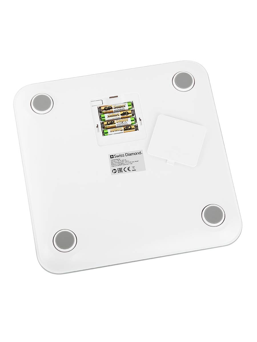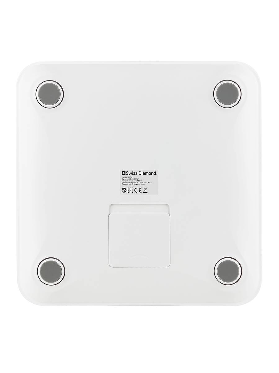 Весы напольные электронные беспроводные Swiss Diamond SD-SC 002 W оценивают 13 биометрических характеристик: массу, ИМТ, долю жировой ткани, вес тела без жира, подкожный жир, висцеральный жир, уровень воды в организме, скелетные мышцы, мышечную массу, костную массу, белок, скорость метаболизма, биологический возраст. Для корректной оценки состояния тела нужно ввести возраст, пол и рост. Есть детский режим.