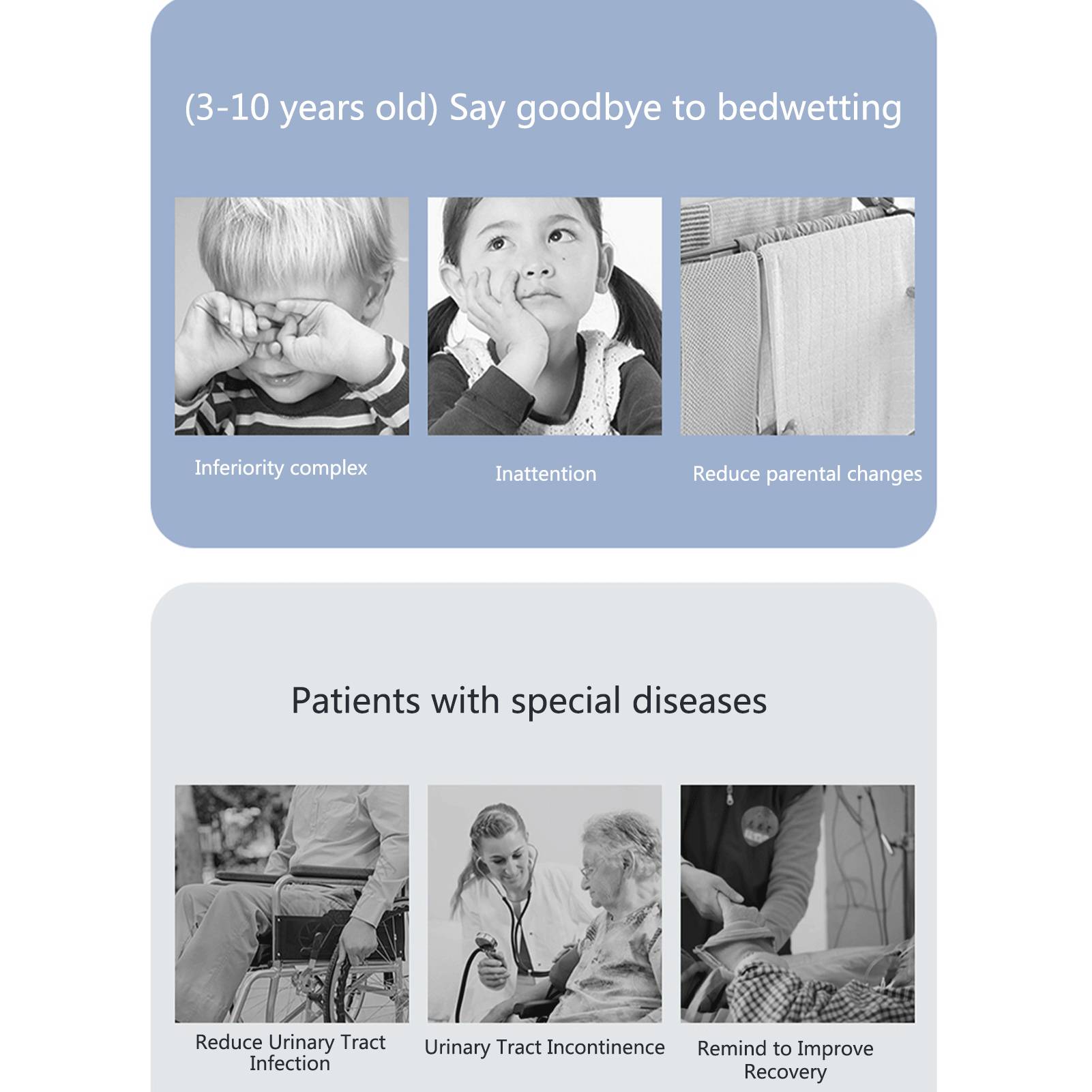1. Мощный и гибкий: мощные и гибкие сигналы тревоги должны быть в состоянии привлечь внимание пользователей. Этот будильник для страдающих ночным недержанием мочи детей имеет сильную вибрацию (с дополнительным шейкером).Из-за ручного измерения возможна погрешность в размере изделия.
