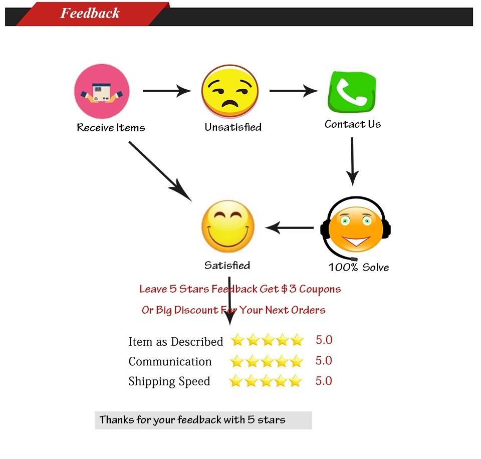 2. Если у вас возникли проблемы, пожалуйста, сначала свяжитесь с нами, мы постараемся помочь вам. 3. Пожалуйста "ПОСЛЕДУЮЩИЕ" Наш магазин, вы получите Дополнительные 1-3% Эксклюзивные скидки для фанатов и дополнительные купоны Как наши VIP-клиенты.