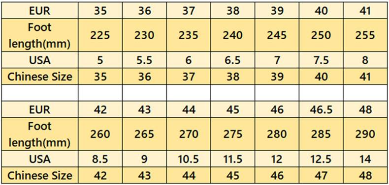 3. Американский размер или европейский размер могут отличаться от вашей страны, пожалуйста, выберите размер только в соответствии с длиной Вашей стопы.