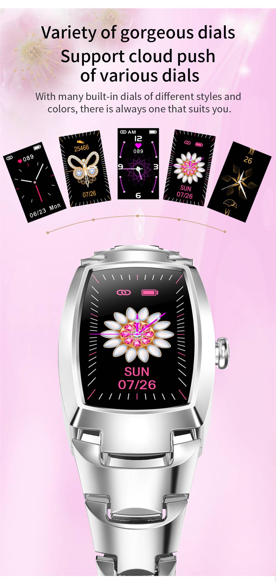 Параметры продукта <;br/> Экран: 1,08 дюймовый полноцветный сенсорный экран <;br/> Разрешение: 220*128<;br/> Аккумулятор: 100 мАч <;br/> Материал: корпус из цинкового сплава + металлический браслет <;br/>Bluetooth ble версия 5,1 <;br/> Класс водонепроницаемости: IP67<;br/> версия системы: android 4,0 или выше <;br/>IOS 10 и выше <;br/> функции <;br/> мониторинг сердечного ритма, Мониторинг Артериального давления/кислорода, мониторинг сна, фазы упражнений/потребление калорий/время упражнений, Амбулаторный Тест сердечного ритма, Женский цикл тела, поиск мобильный телефон, напоминание о сидячем положении, напоминание о лекарствах, напоминание о питьевой воде, напоминание о будильнике, напоминание о встрече, будильник/напоминание о сидячем положении, пульт дистанционного управления камерой (качающаяся камера), управление музыкой <;br/> Спорт: бег, скалолазание, прогулки, езда на велосипеде, футбол, баскетбол, Настольный теннис, бадминтон. Напоминание о звонке/SMS (wechat, ter Inter. Viber. Линия)<;br/> Язык <;br/> Браслет поддерживает следующие языки: китайский, английский, японский, французский, немецкий, итальянский, испанский, русский, португальский, турецкий и польский.<;br/> Упаковка включает в себя <;br/> основной двигатель, погрузчик, дракон, руководство, коробка <;br/> После получения часов, пожалуйста, зарядите его сначала. После длительного периода логистики мощность аккумулятора часов очень низкая. Перед использованием, пожалуйста, отсканируйте qr-код в руководстве, загрузите приложение, а затем подключите его к приложению.