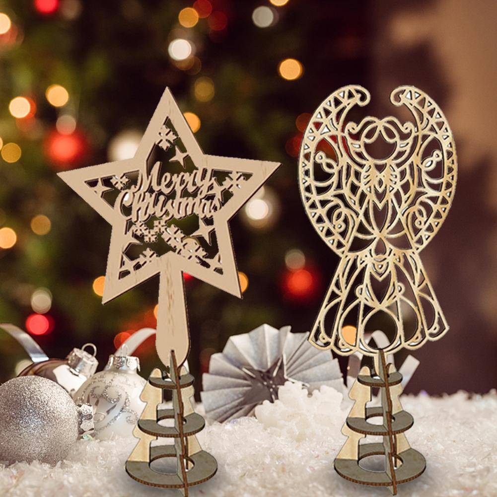 2 шт. Рождественская елка Топпер Деревянная звезда Ангел рождественские украшения для дома Рождественская елка украшения Navidad Новый год Natal Noel подарок