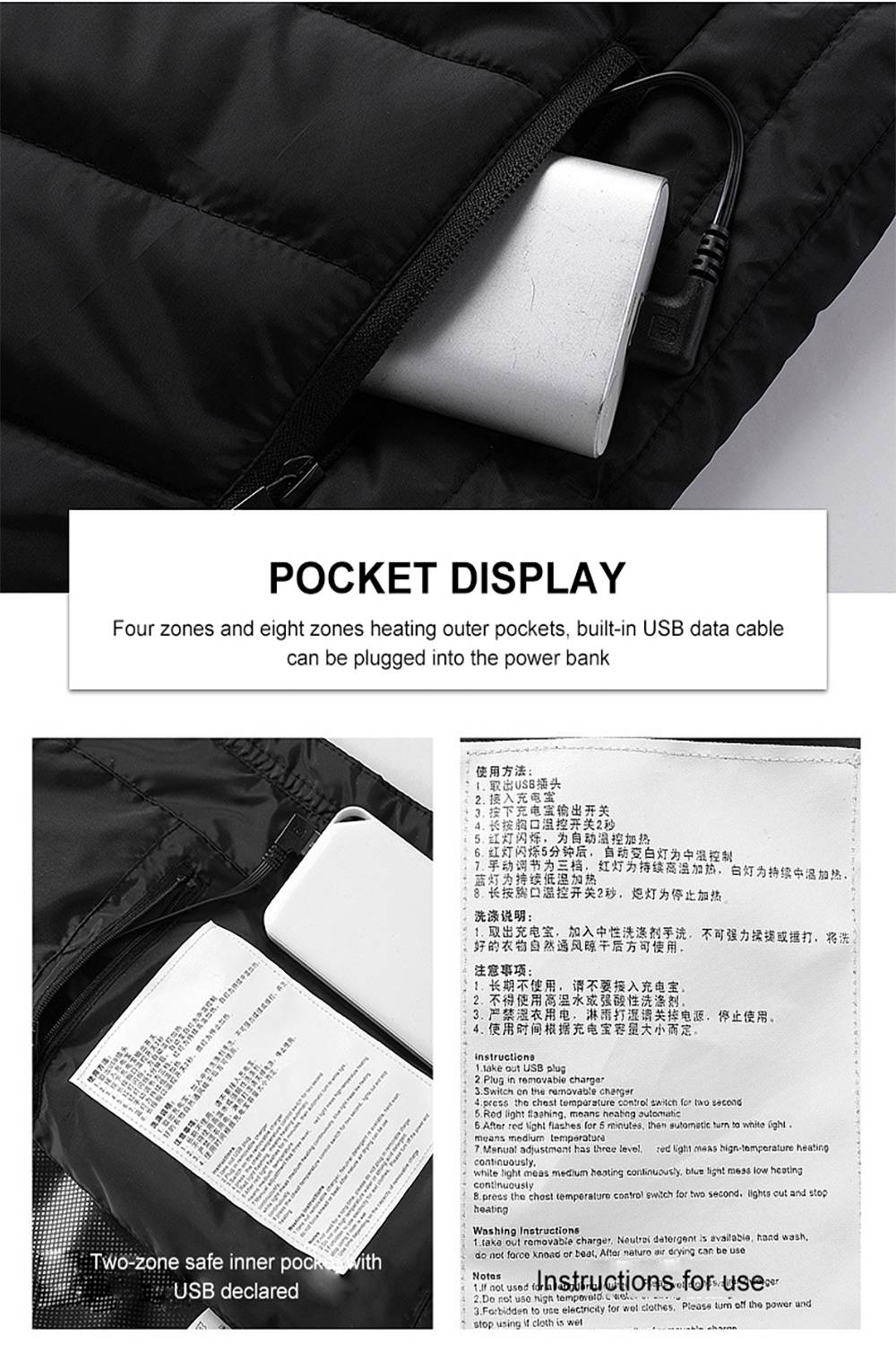 6. Seguro y ligero: el sistema de calefacción mejorado puede garantizar que disfrutes de una calidez cómoda. El calentador de alambre de fibra de carbono de Area grande es seguro y aislado. Cómodo y agradable para la piel, tacto suave y calidez mejor. Puede ayudarte a pasar todo el invierno fagilmente sin llevar ropa grande en condiciones frias.