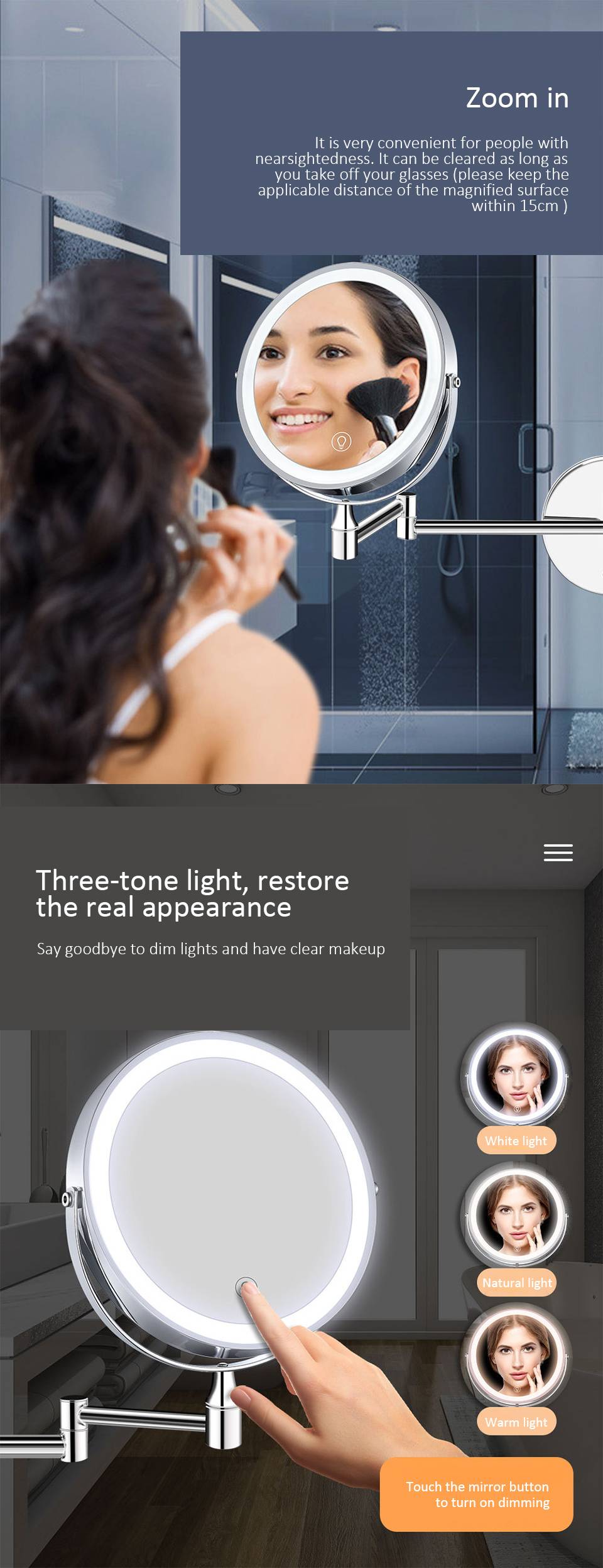 8 дюймовый светодиодный Двусторонняя макияж зеркало Настенный Складной Цвет Контроль температуры со светодиодной лампы 7x 10x Лупа Ванная комната зеркала
