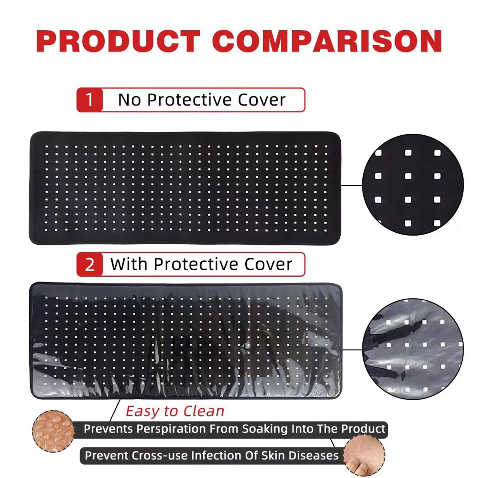Красный светильник терапия и близкое инфракрасное сочетание. Красный светильник поглощается более высокой пропорцией тканью кожи, что делает его особенно эффективным для укрепления здоровья кожи и увеличения коллагеновый продукт. Ближний инфракрасный светильник длиной 850 нм длиннее, чем красный светильник, он может доставить энергию клетке тела, что делает его идеальным для улучшения восстановления мышц, уменьшения боли в суставах и воспаления.