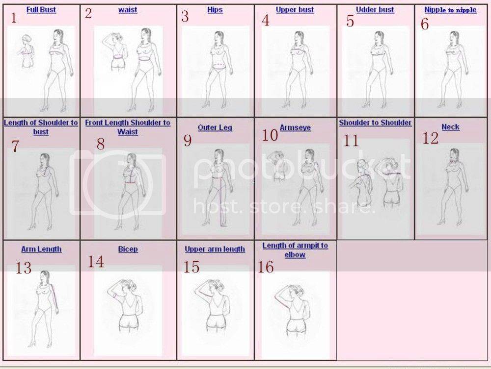 Бюст =, бюст =, талия =, плечи до плеча =, длина спереди от плеча до талии =, длина платья от плеча до подола платья =,