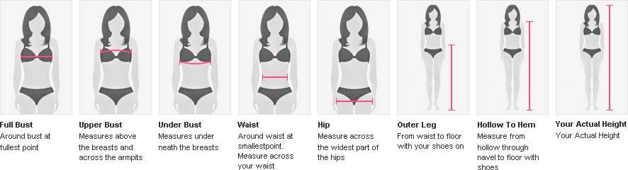 Мы настоятельно рекомендуем, чтобы ваши измерения были сделаны профессионалом с вашей одеждой перед покупкойПлатье