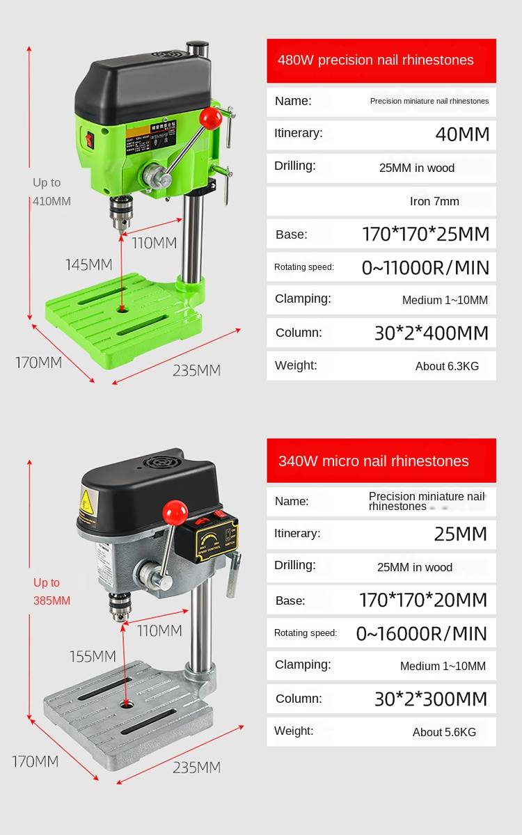 Примечание: многие клиенты покупают перед проблемами, чтобы увидеть 340 Вт до 480 Вт, специальное использование чистой скорости, малый крутящий момент, при обработке твердых товаров или бусин, столярные отверстия рекомендуется купить 680 Вт или 710, промышленный 1050 Вт обработки металла сверла фрезерования очень подходит