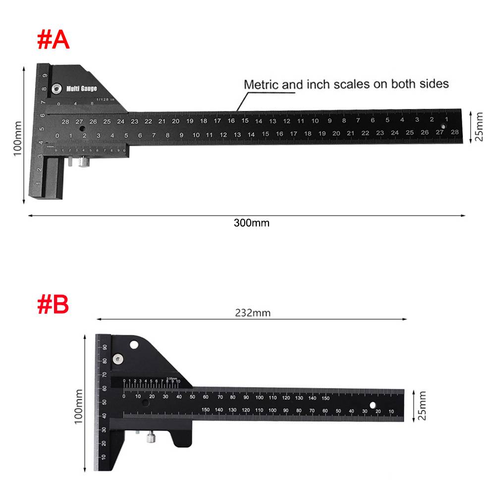 * 1. Многофункциональный Калибр измеряет длину, ширину, глубину, 90 °, 135 °(45 °) и линии рисования, облегчает измерение и маркировку.
