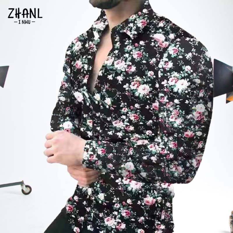 ★Мода: Модная приталенная Мужская Повседневная рубашка с длинными рукавами и принтом
