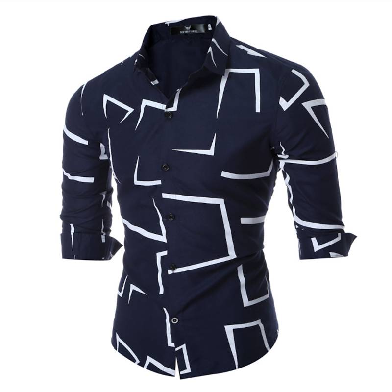 Серия мужских рубашек-Модная приталенная Мужская рубашка с длинными рукавами и принтом