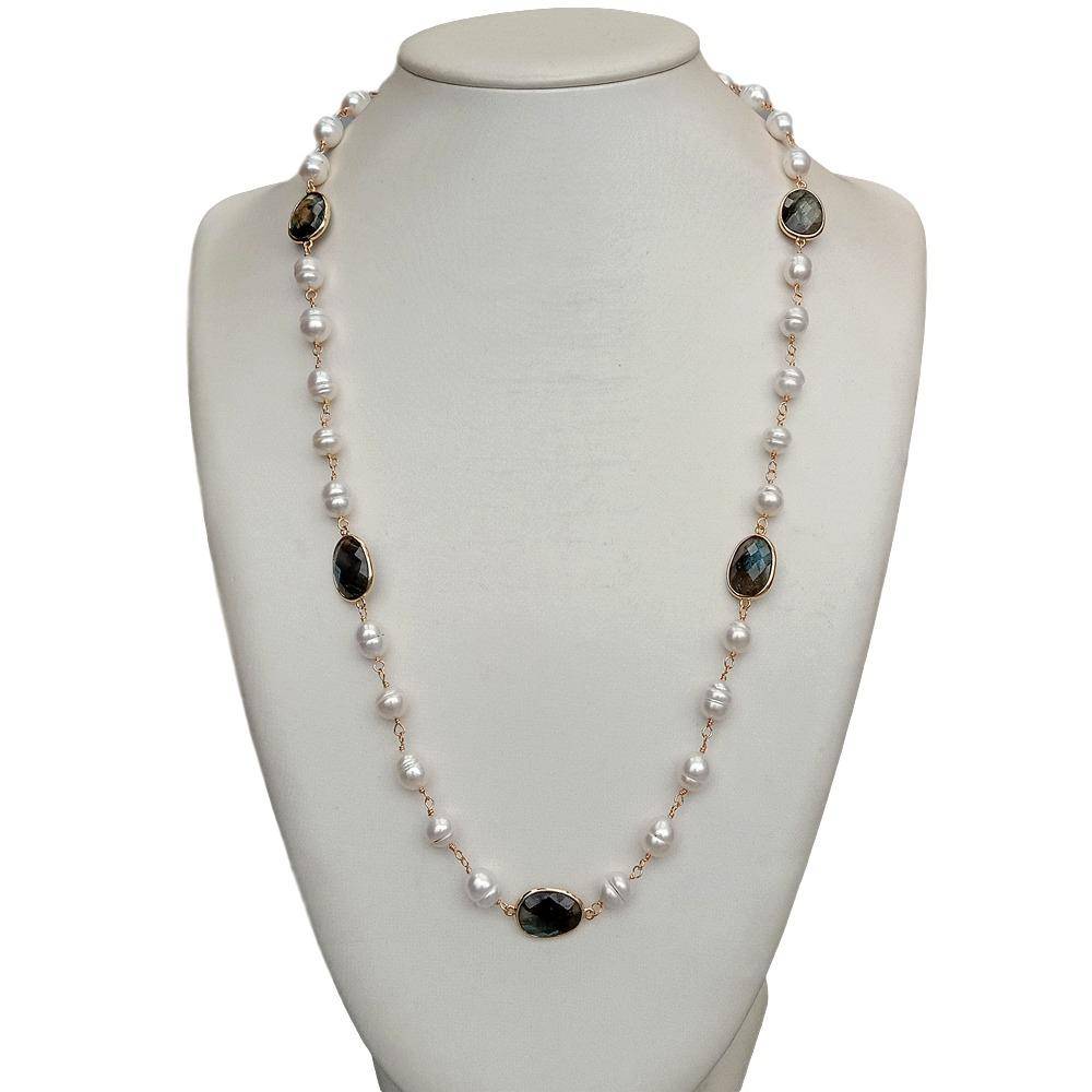 Информация о драгоценных камнями: пресная вода культивированный жемчуг, белый жемчуг в форме риса Розария цепи, натуральный Лабрадорит ободок набор соединитель,Хорошее качество, высокий блеск!
