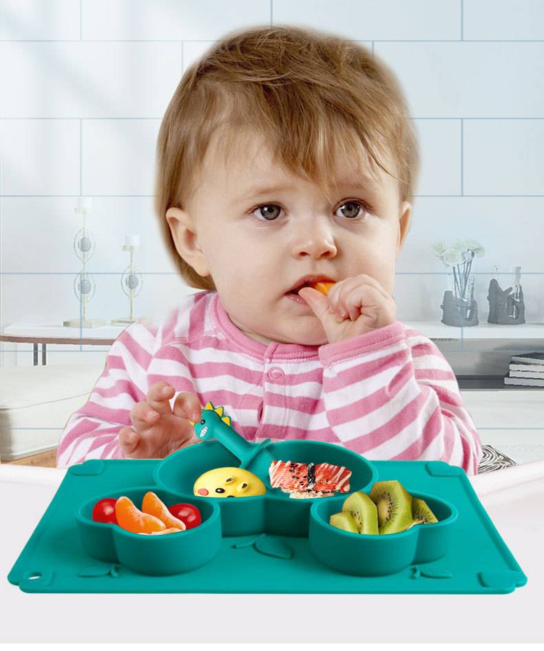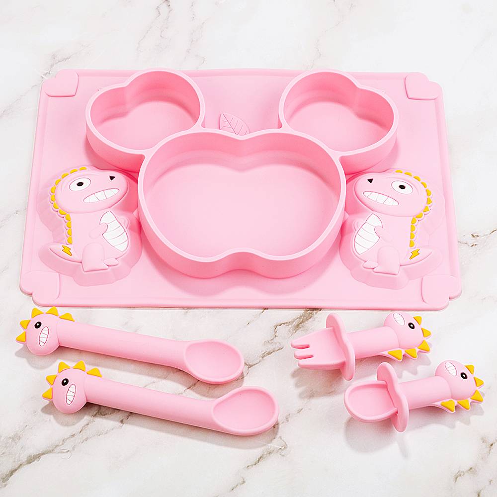 TYRY.HU детская силиконовая тарелка детская миска и тарелка динозавр мультфильм ложка Вилка Водонепроницаемый нагрудник Набор для кормления ребенка силиконовая миска посуда детская посуда