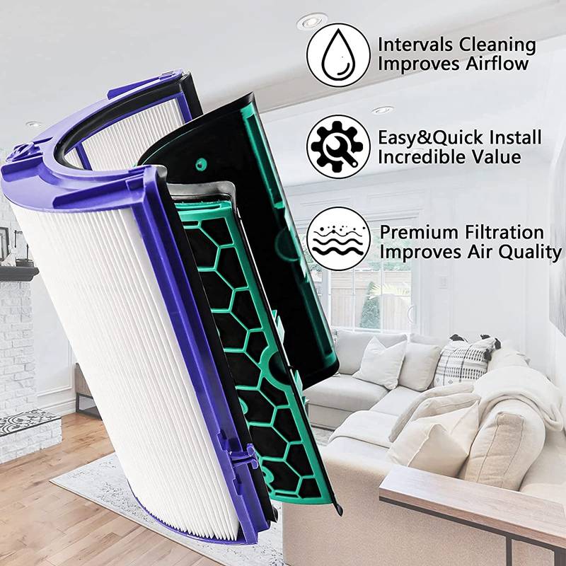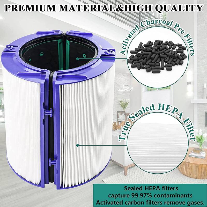 [Истинный HEPA фильтр] наш HEPA фильтр для замены с двухслойной фильтрацией может глубоко очистить воздух, фильтры с активированным углем удаляют газы, герметичные HEPA фильтры улавливают 99.97% ультратонкой пыли. Для воздухоочистителя Dyson заменяет фильтр вентилятора из высококачественного материала и активированного угля премиум класса, чтобы значительно улучшить общее качество воздуха вашей среды обитания