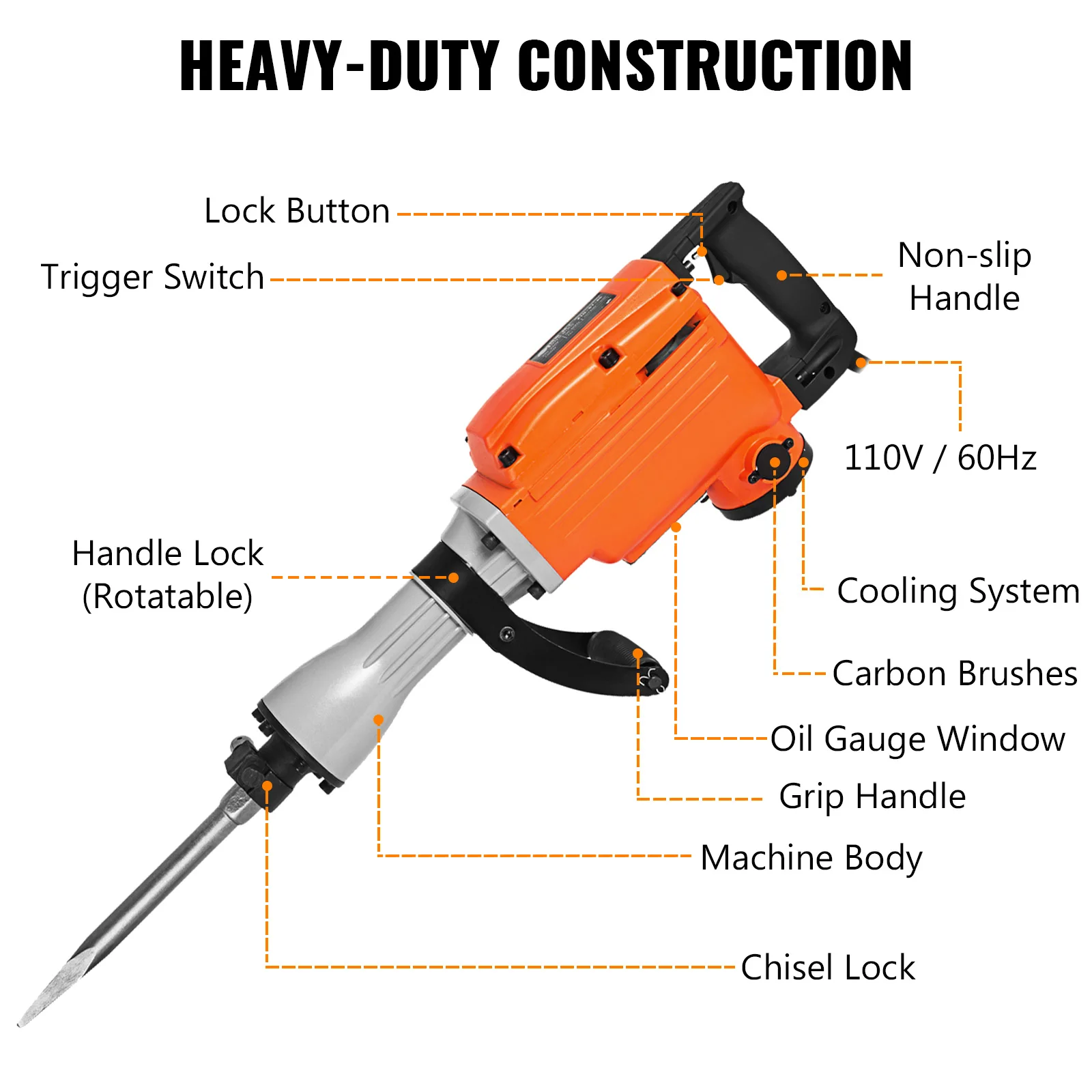 【DOUBLE CHISEL】-одна 16 "Булл точка долото и один 16" плоский долото включены в посылка для различного использования. Быстрая сборка и разборка. Плотно прижмите и никогда не упадут.