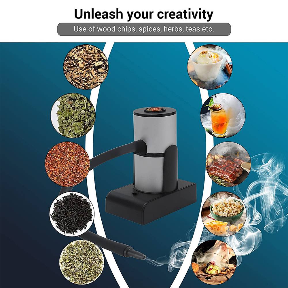 Специальное назначение продукта: рыба, морепродукты, молекулярная кухня, коктейли, ореховые закуски (курительная пушка быстро использует различные виды опилок, чая, трав, специй, сена, И высушенные цветы для дыма. Для добавления холода в еду или напитки требуется всего 3-5 минут. Дым и аромат)