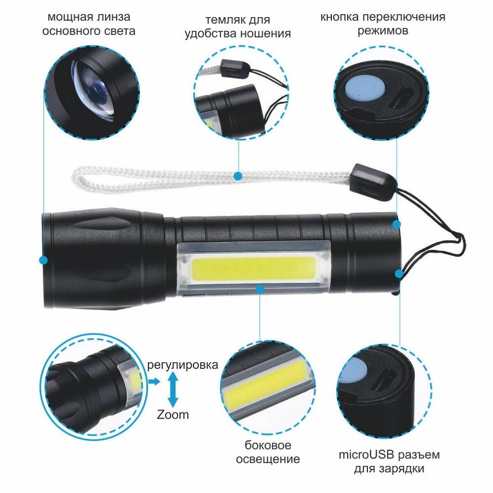фонарик со встроенным аккумулятором;
