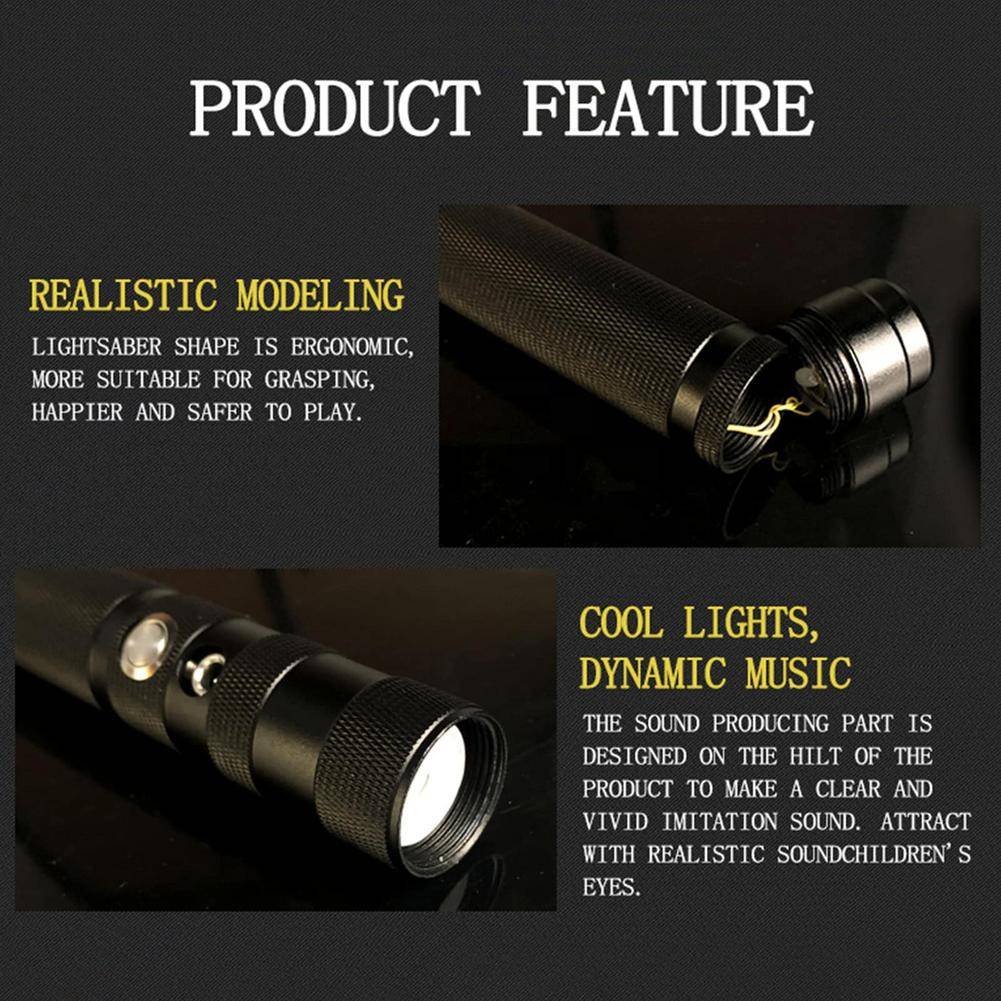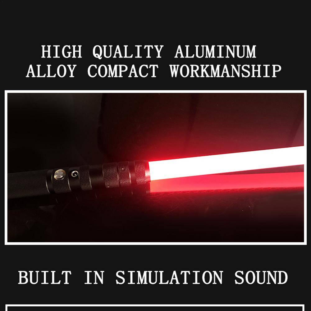 Световой меч прочный и прочный, гладкий и более удобный, так как рукоять изготовлена из металлического алюминия с улучшенным процессом полировки и часть трубы изготовлена из ударопрочного ПК с толщиной стенки трубки 2 мм. Он имеет 7 изменяемых цветов и реалистичные встроенные звуки.