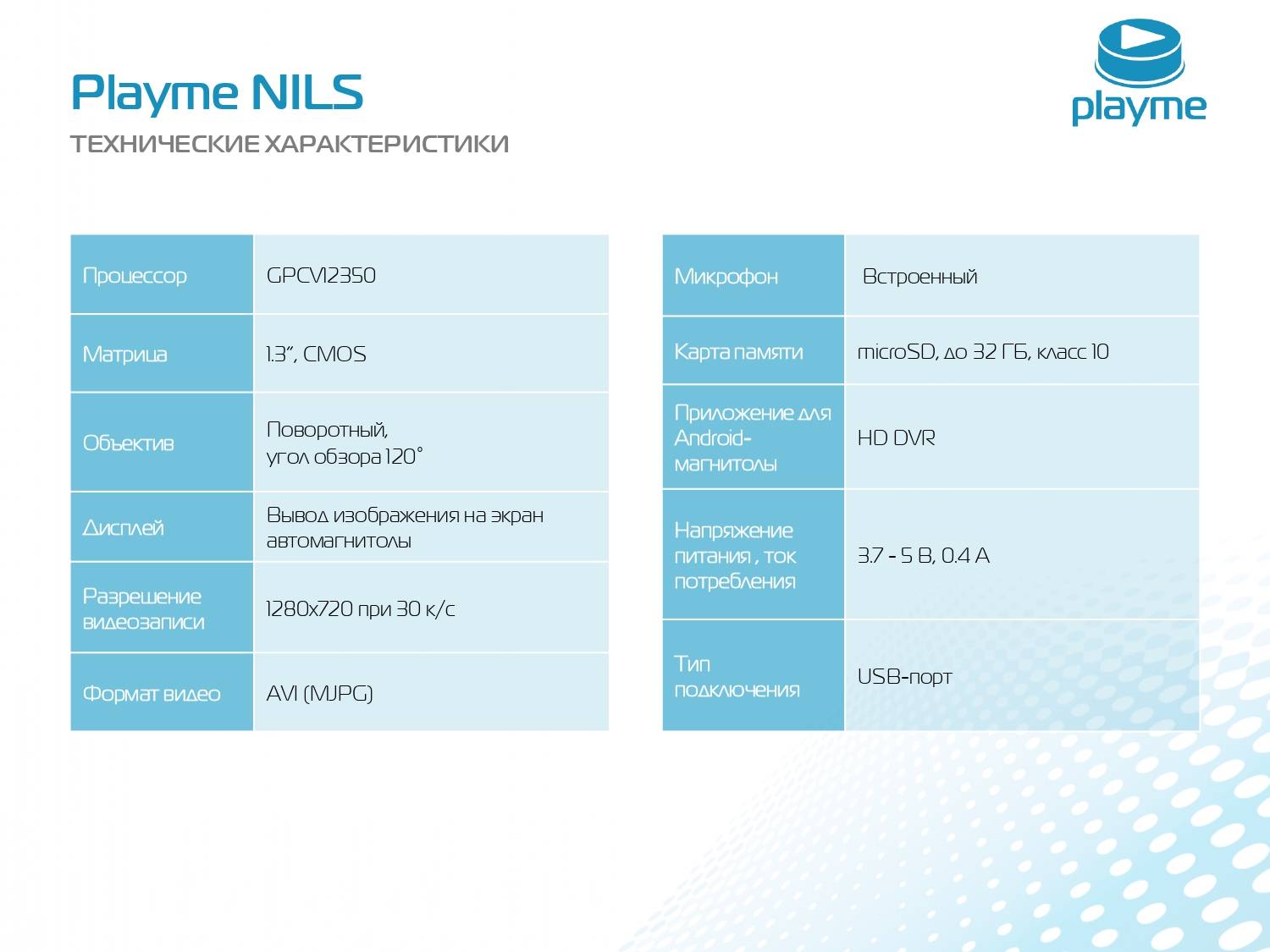 Видеорегистратор авто Playme NILS — современный и универсальный видеорегистратор автомобильный, подключающийся к установленной в автомобиле Android-магнитоле. Благодаря компактным размерам и стильному дизайну, автомобильный мини видео регистратор не будет мешать обзору и органично впишется в любой интерьер. Видеорегистратор подойдет для такси.