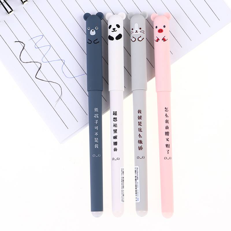 4 шт./компл. Kawaii Pig Bear Cat Mouse стираемая гелевая ручка школьные канцелярские принадлежности подарок 0,38 мм синие Черные чернила