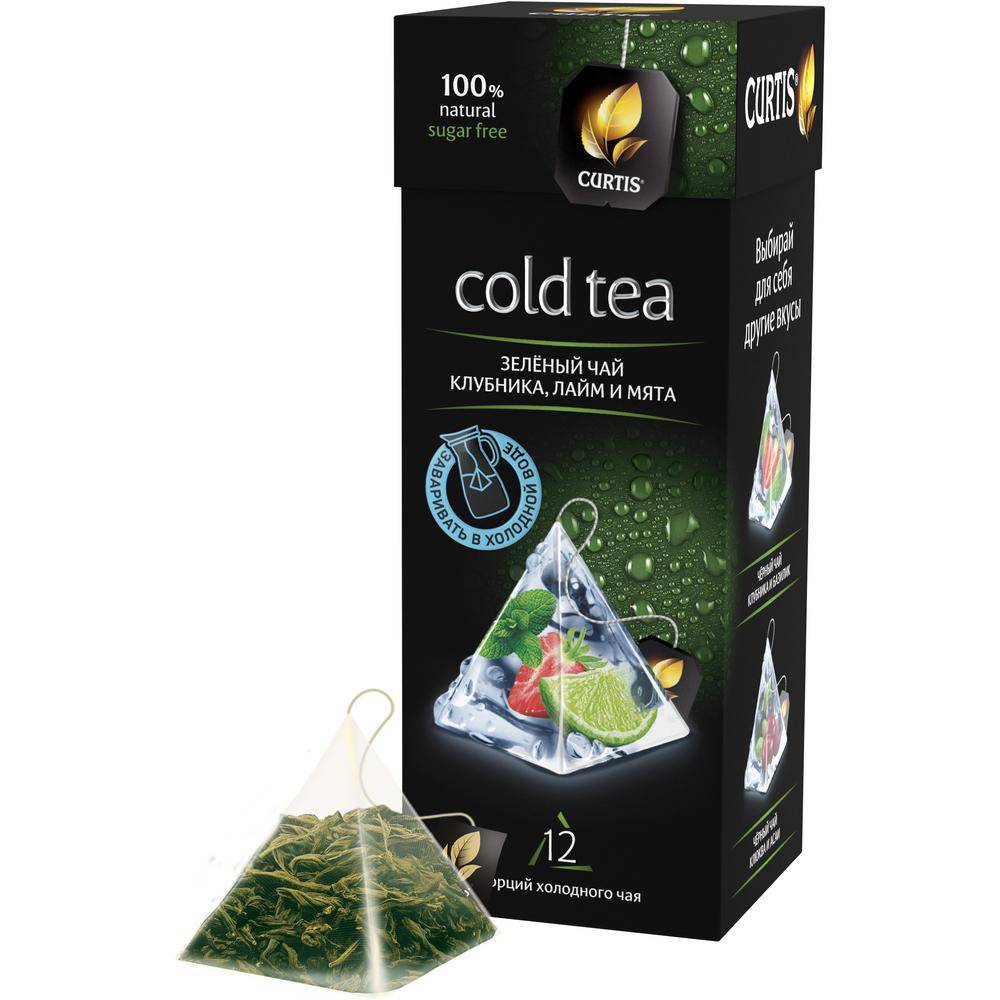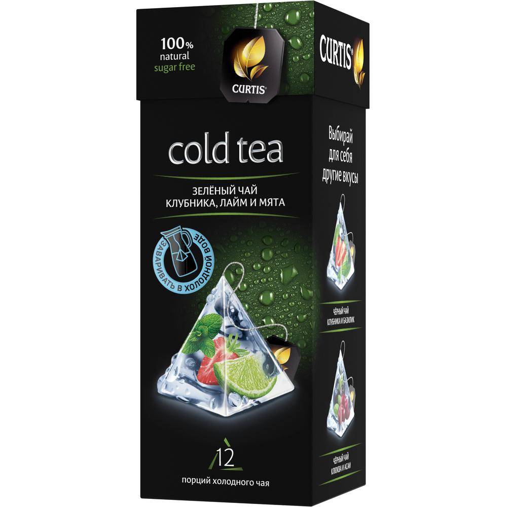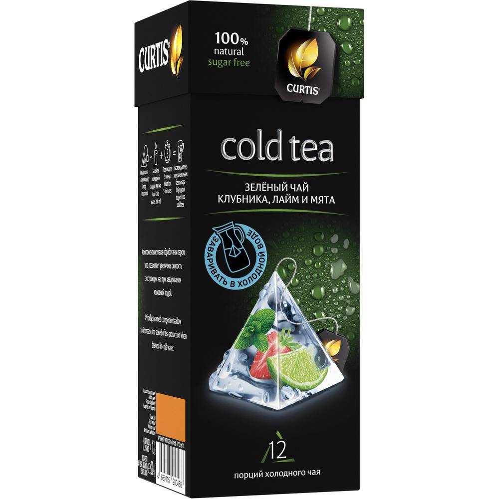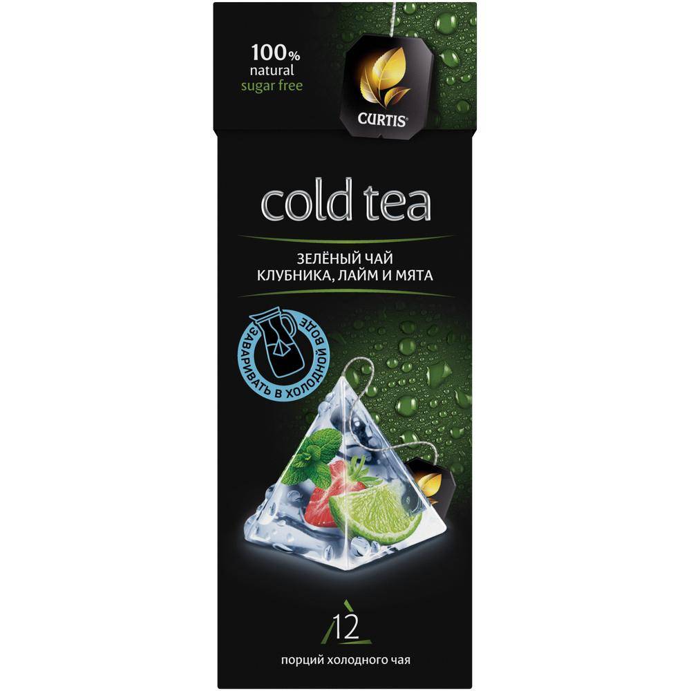 Зеленый фруктовый чай в пирамидках со вкусом клубники, лайма, мятой и лепестками гибискуса. Чай Curtis Cold tea заваривается в холодной воде благодаря предварительной обработке паром компонентов купажа. Насладись освежающим летним вкусом холодного чая Curtis.