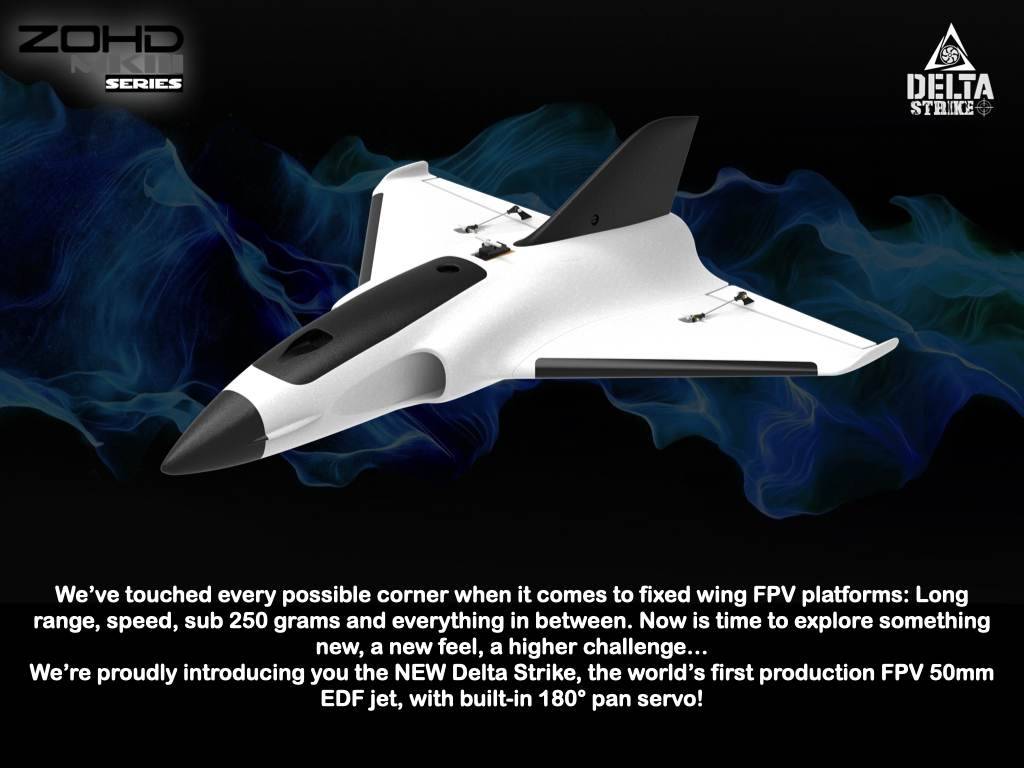 Мы с гордостью представляем вам новый Delta Strike, первое в мире производство FPV 50 мм EDF jet, со встроенным сервоприводом 180 °!