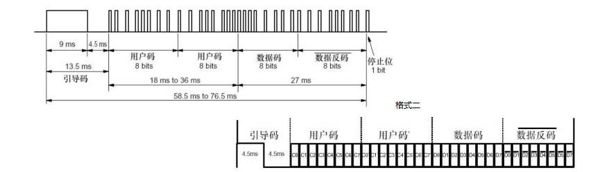 TP1 подключен к выходному контакту инфракрасного приемника, TP2 подключен к GND, и TP3 подключен к VCC.Функция декодирования инфракрасного пульта дистанционного управления поддерживает два инфракрасного дистанционного управления форматами кодирования.Формат один