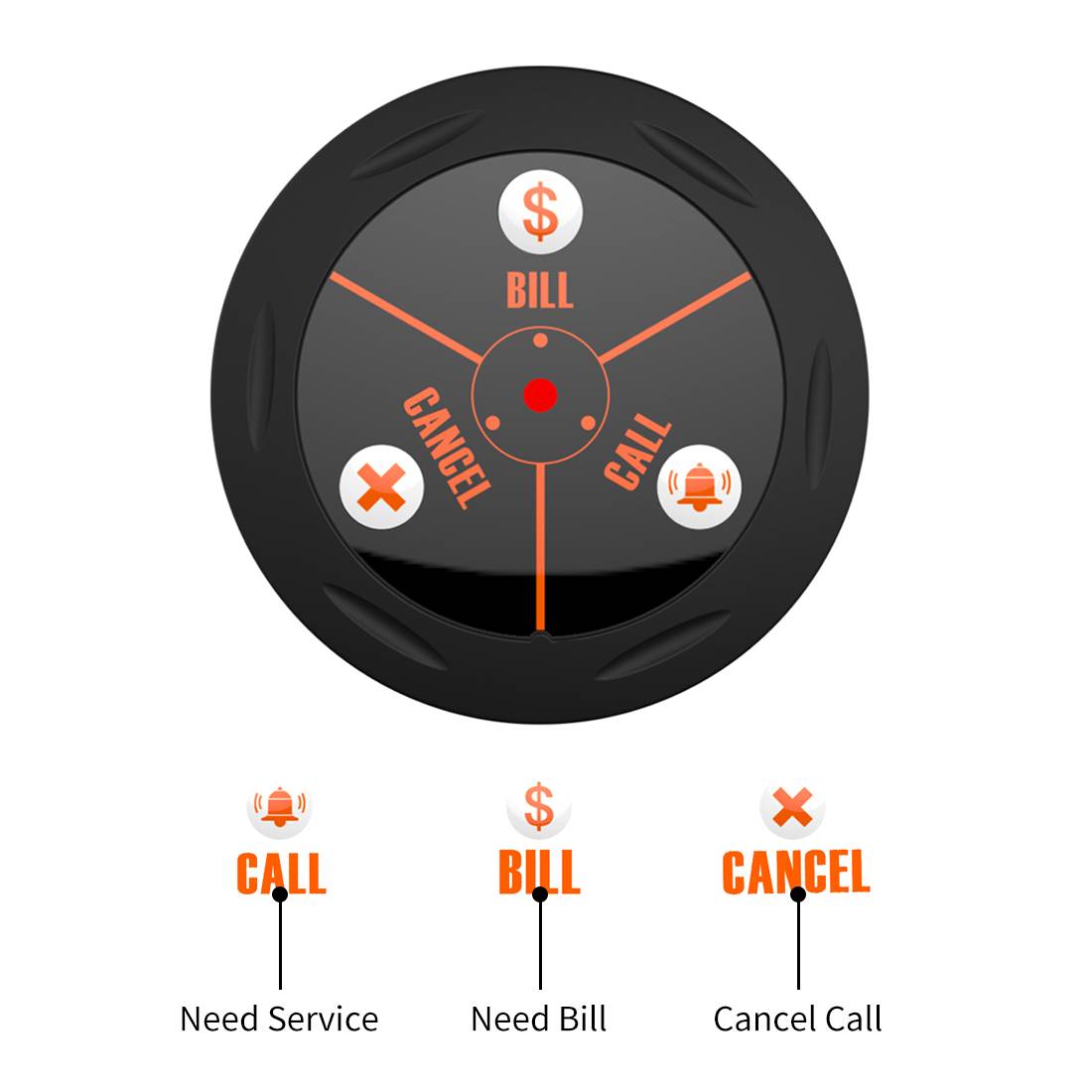 【Несколько функций 】 сигнал вызова подсказка вибрацией и отображением номера, чтобы не увеличивать ненужный шум. Поддержка дисплея на 3 языках: английском/японском/китайском. 3-клавишная кнопка вызова может передавать 3 разных содержимого на пейджер запястья, вызов/счет/отмена.