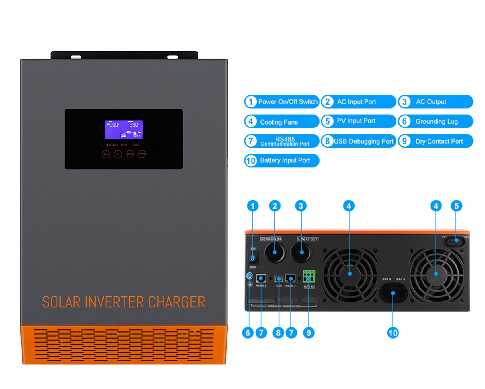 PowMr 5500KW гибридный солнечный инвертор MPPT 110A 500VDC PV панель Вход 220VAC 48VDC Buid в чистой синусоидальной волне Солнечная зарядка Contronller POW-HVM-5.5H-48V