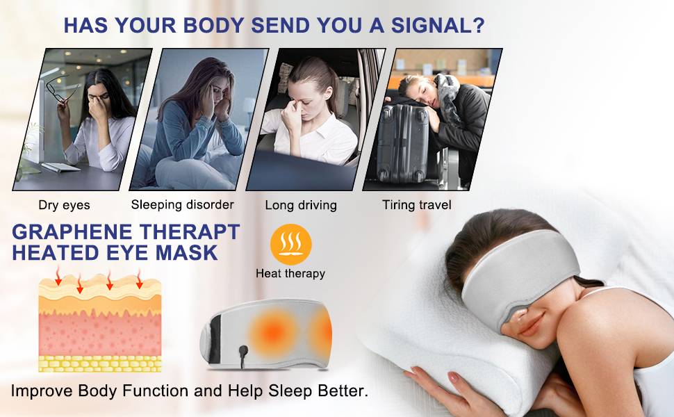 ❥Почему вы выбираете нашу грелую маску для глаз? Графеновая нагревающая маска для глаз полезна для снятия усталости глаз, отечности, боли, раздражения и сухости, сухости глаз, Стила, розовых глаз, MGD и блефарита. Держите ваши глаза влажными и удобными, маска для сна излучает равномерное и непрерывное тепло, наслаждайтесь теплым компрессом для глаз немедленно без какой-либо подготовки, эта теплая маска для сна для сухих глаз станет идеальной альтернативой.