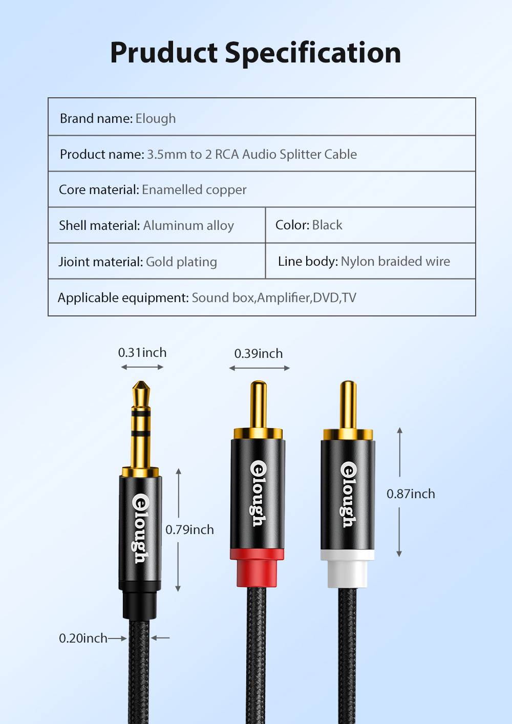 Elough RCA кабель AUX 3,5 мм Джек 2RCA Мужской адаптер-разветвитель аудио кабель для наушников Динамик для Apple ТВ аудио дома Театр кабель