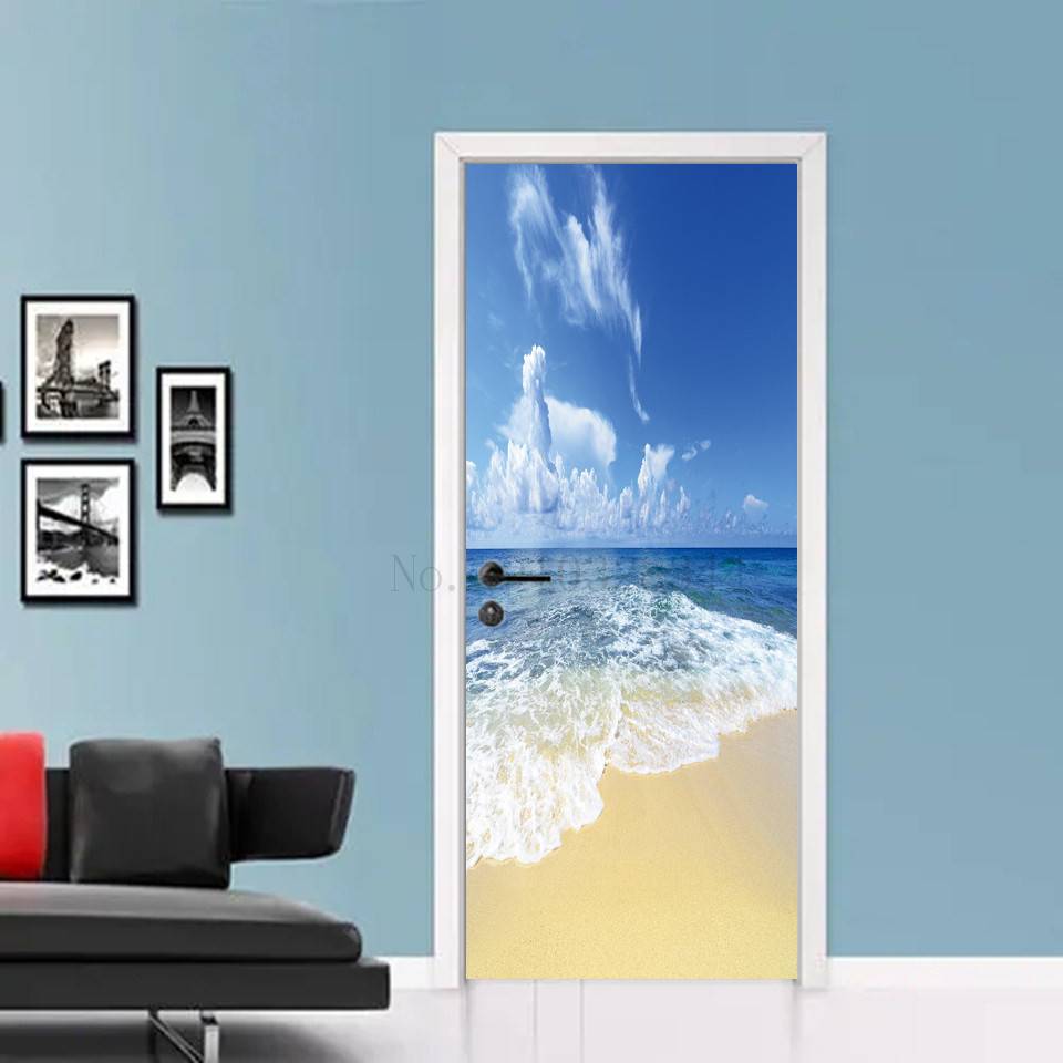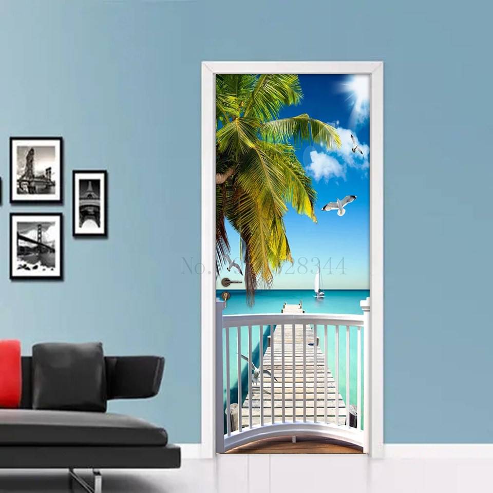 Приправа, Пляжная дверь, наклейки для спальни, ванной комнаты, гостиной, 3d украшения, обои, самоклеющиеся виниловые постеры, оконное стекло, фотообои