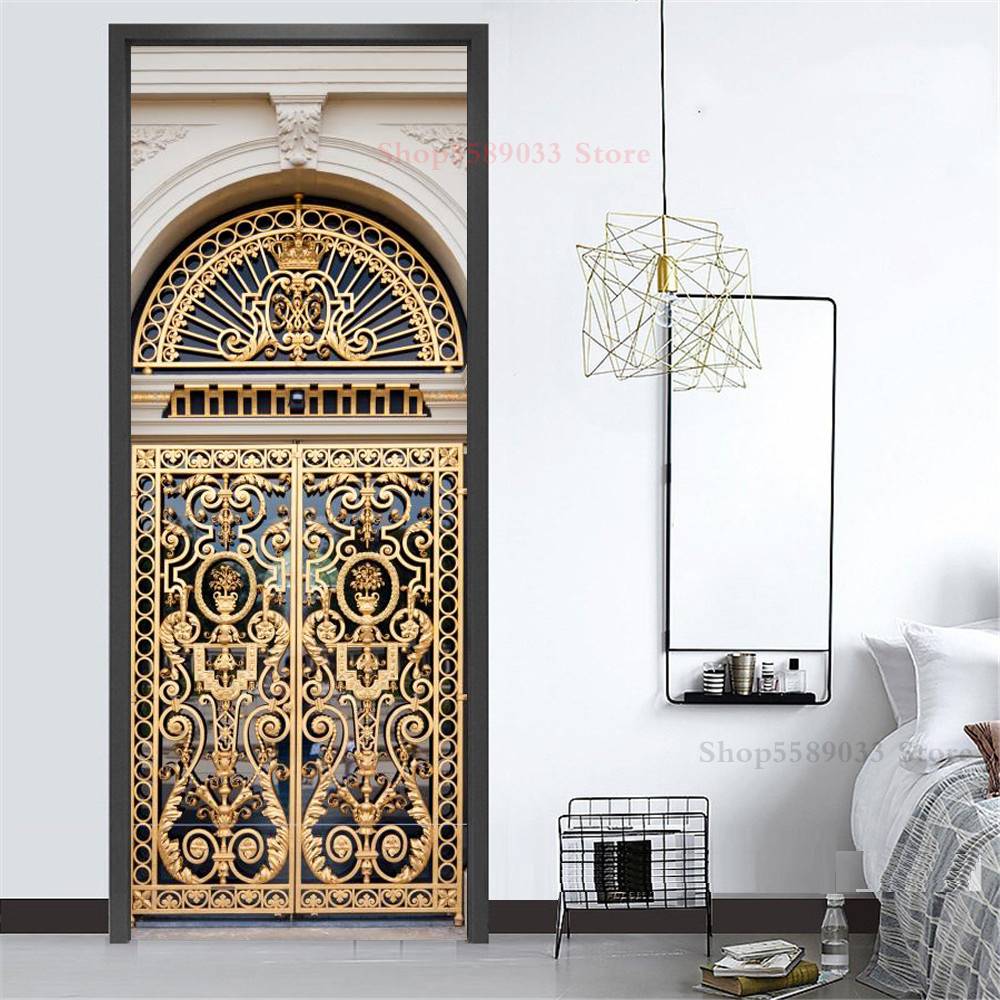 Скандинавский стиль наклейка на дверь виниловая клейкая картина геометрической формы 3D обои для спальни кухни гостиной ворота лес пейзаж постер ремонт Autocollant Porte