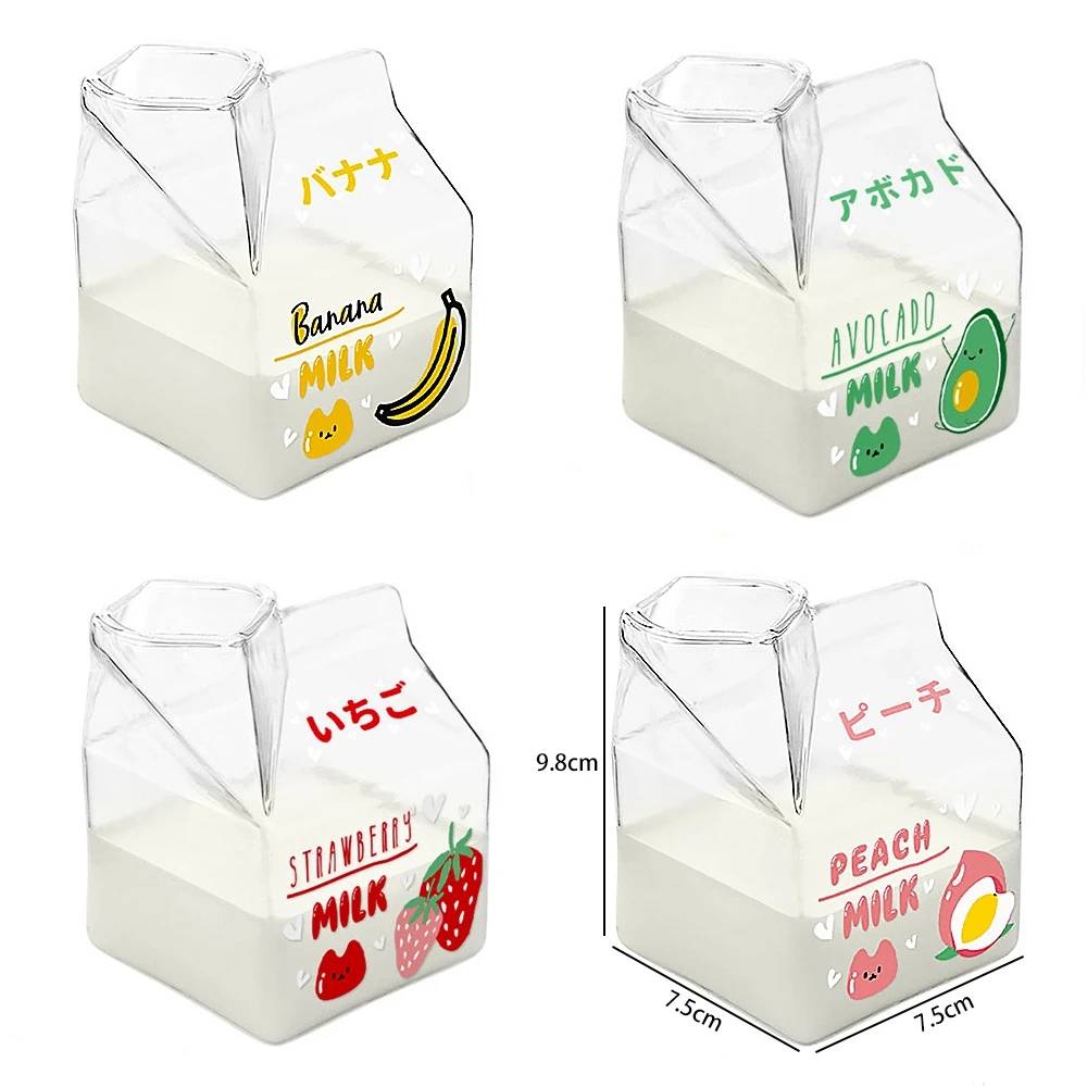 Новинка 380 мл термостойкие стеклянные чашки коробка для молока мультяшная мини квадратная кружка для Молока бутылка для молока
