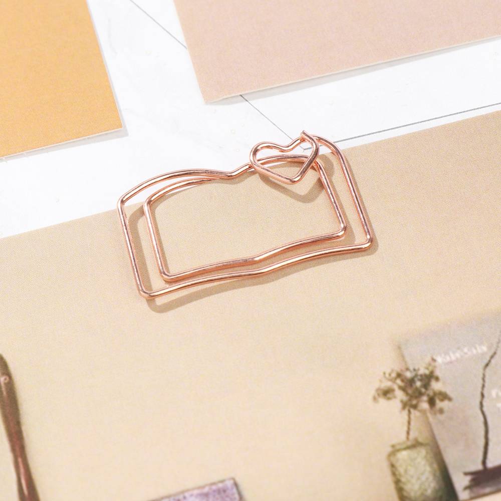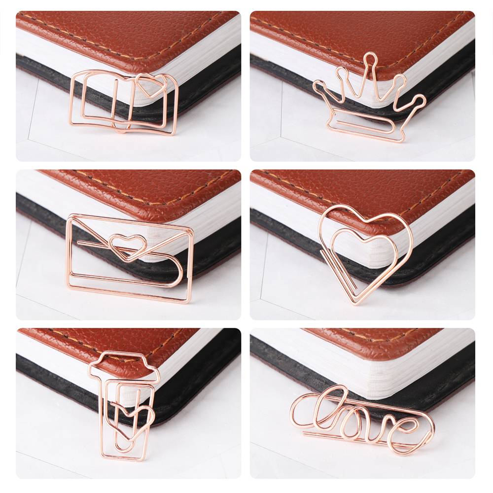Посылка: 60 бумажных зажимов из розового золота (корона, сердце, любовь, письмо, книга, кофейная чашка)