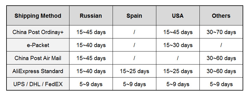 Для 80% стран, когда ваш заказ превышает 120 долларов США, мы отправляем его черезЭкспресс-доставкаТакие как DHL |