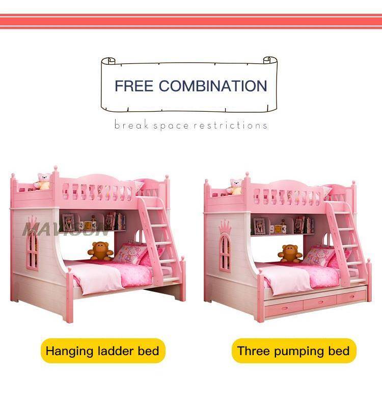 Современная маленькая домашняя мебель для квартиры в скандинавском стиле, двухслойная детская кровать с выдвижными ящиками, подходящая розовая двухъярусная кровать с горкой
