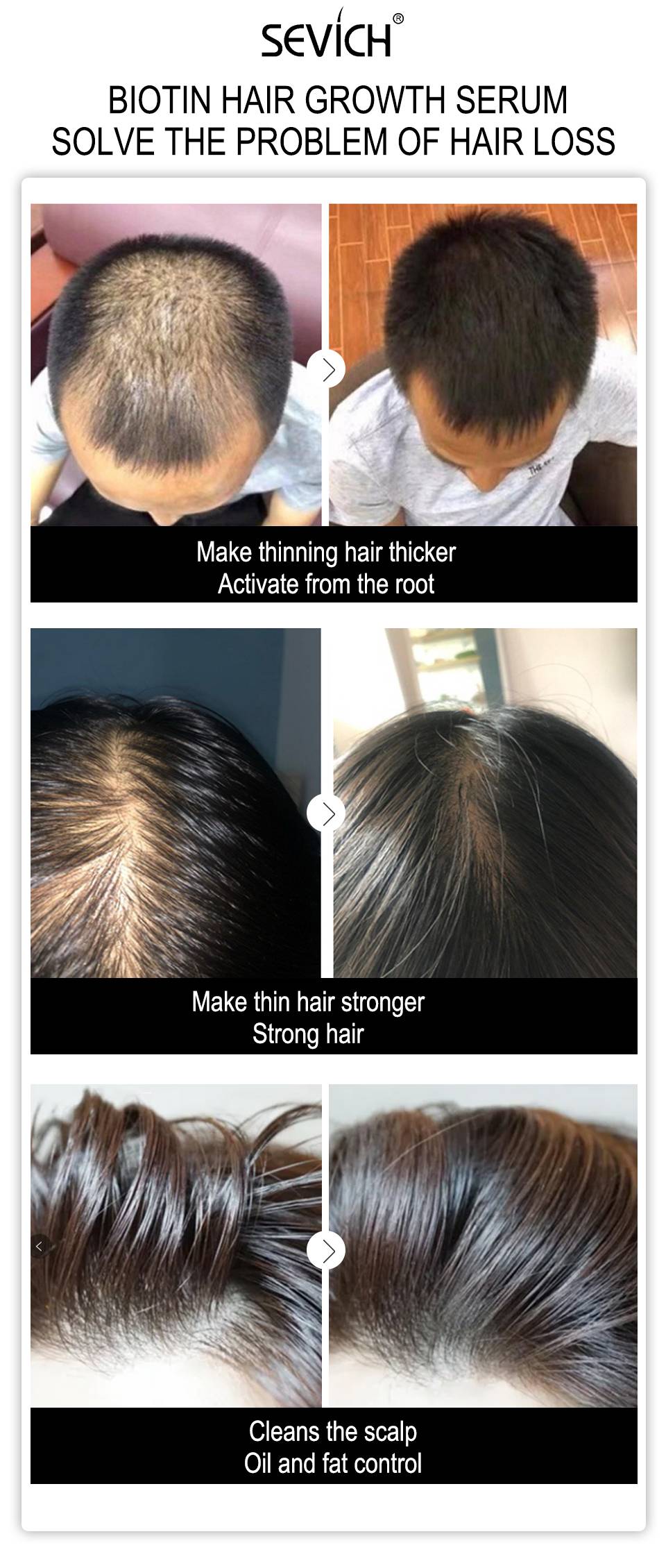 Продукт богат различными эссенциями для роста волос, такими как многоцветность полигония, имбирь и биотин, которые могут эффективно восстанавливать и заживлять поврежденные волосяные фолликулы и способствует росту волос.