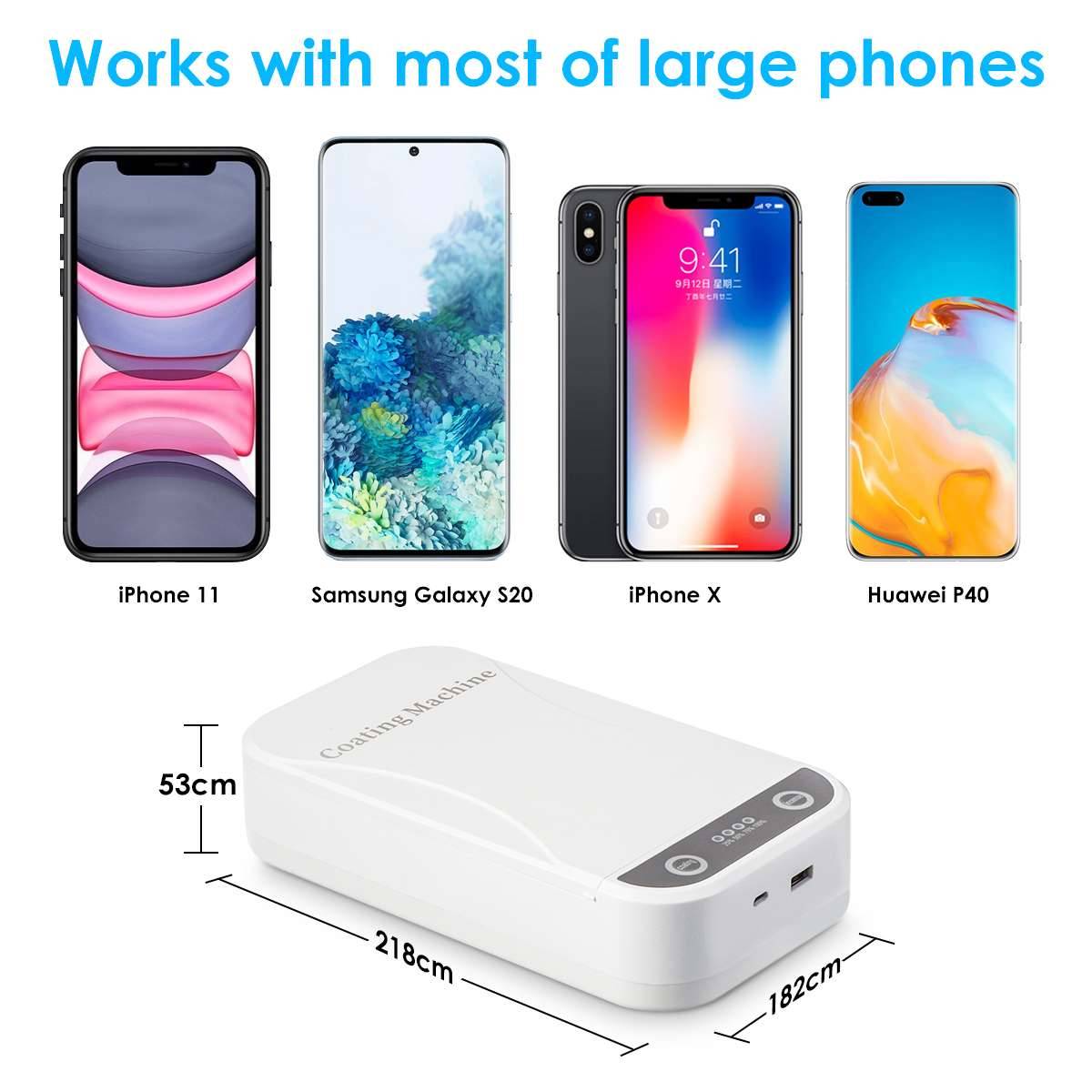 Размер 218x182x53 мм, подходит для Мобильные телефоны под 6,5 дюйма, очень подходит для небольших аксессуаров, в дополнение к мобильные телефоны, также можно стерилизовать ювелирные изделия, карт, кисти для макияжа, очки, инструменты для красоты, bluetooth-наушники и предметы первой необходимости.