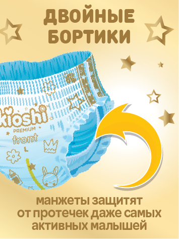 Подгузники-трусики KIOSHI PREMIUM обладают японским качеством и отвечают самым высоким требованиям для подгузников: дышащие, мягкие, непромокаемые, гипоаллергенные, без отдушек, удобные, без натираний.