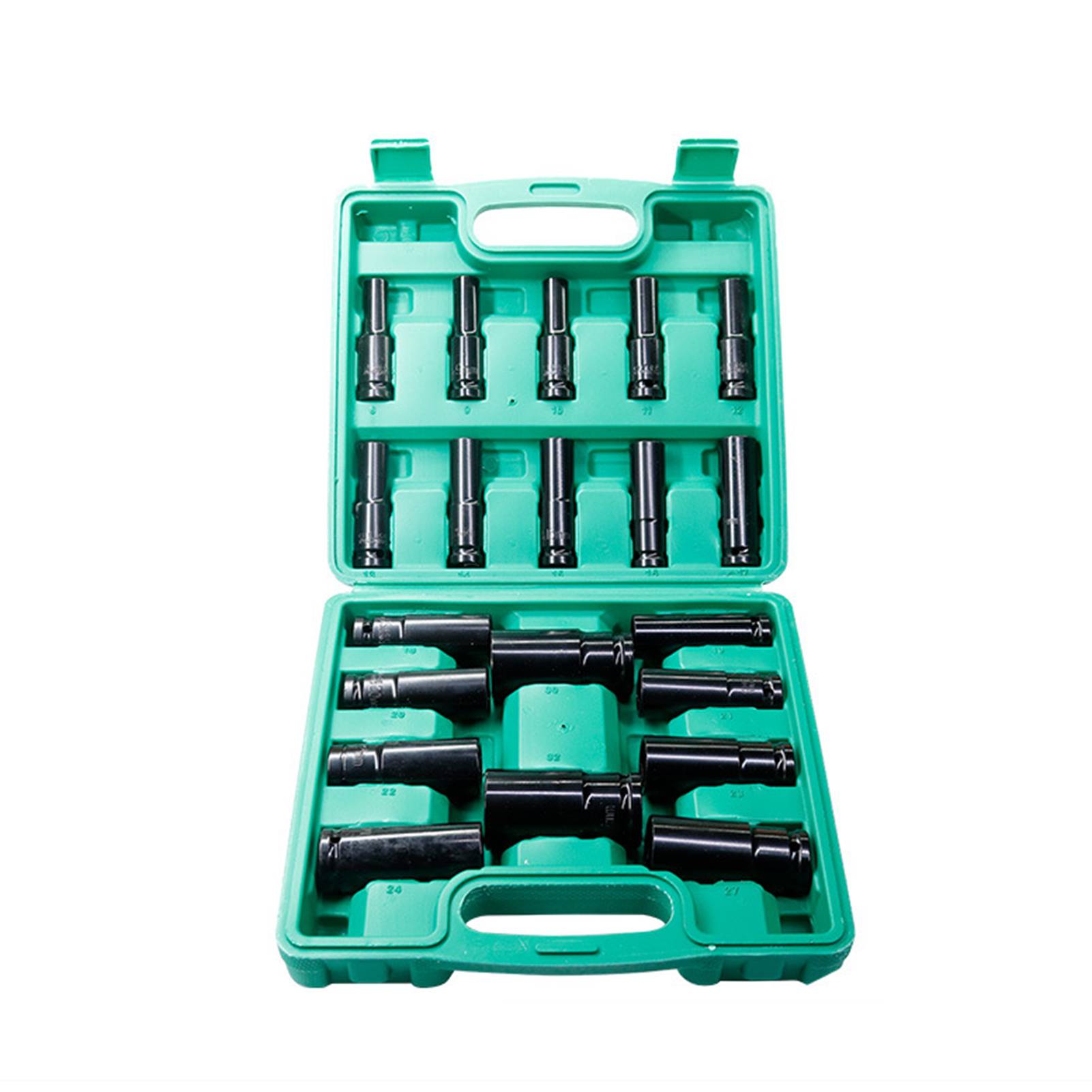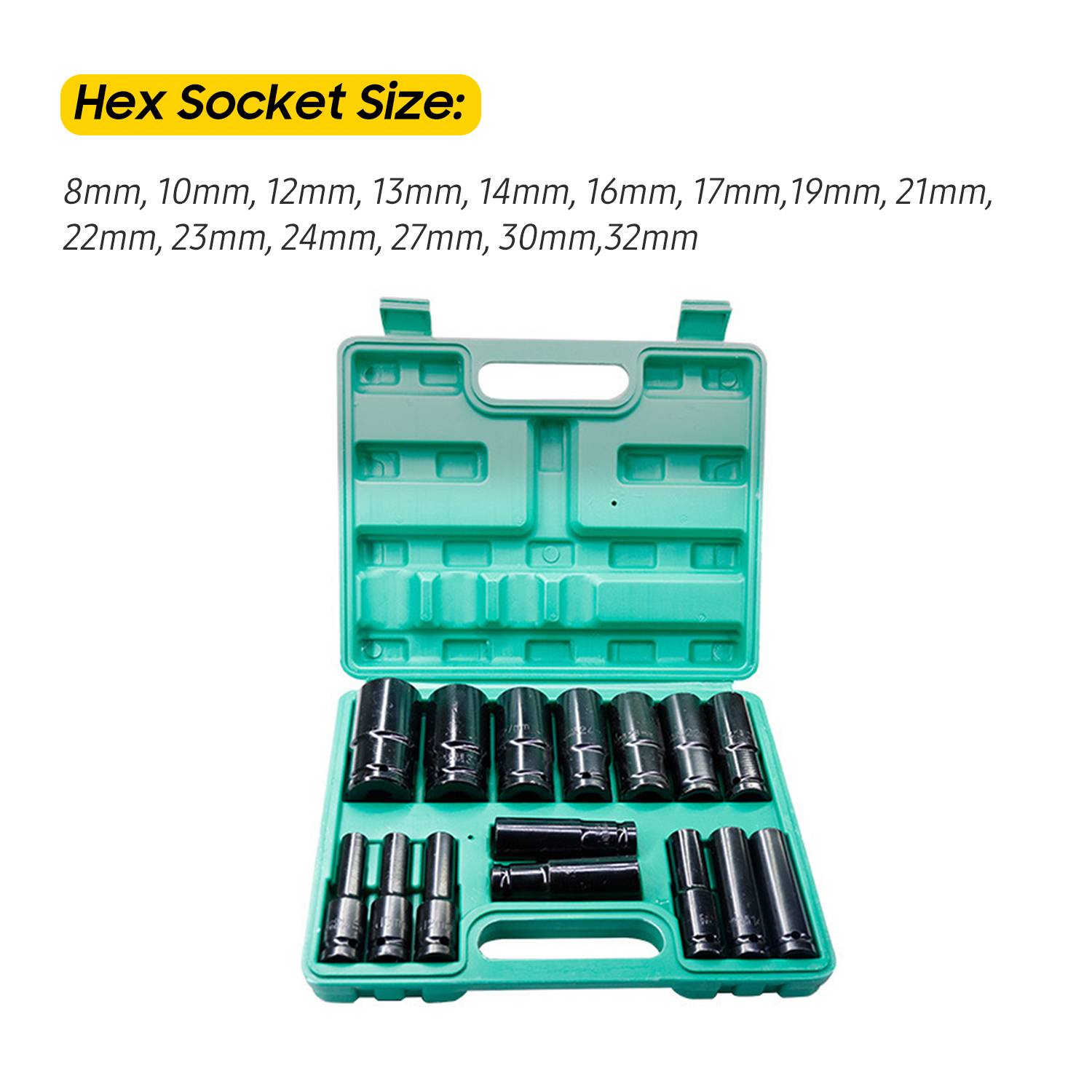 Твердый пластиковый ящик для хранения хранит все ударные розетки, аккуратные и организованные, что удобно для хранения и транспортировки.