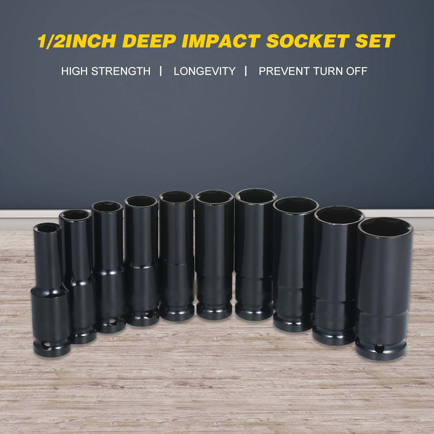 Высокопрочные розетки из углеродистой стали могут выдерживать больше крутящего момента от ударных инструментов. Черная оксидная отделка обеспечивает максимальную защиту от ржавчины и коррозии, обеспечивает долгий срок службы.
