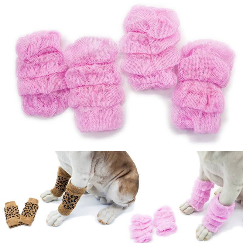 4 шт., зимняя теплая для щенков собак, носки для домашних животных, милые Нескользящие носки в полоску, мягкая обувь для собак, аксессуары для маленьких средних собак