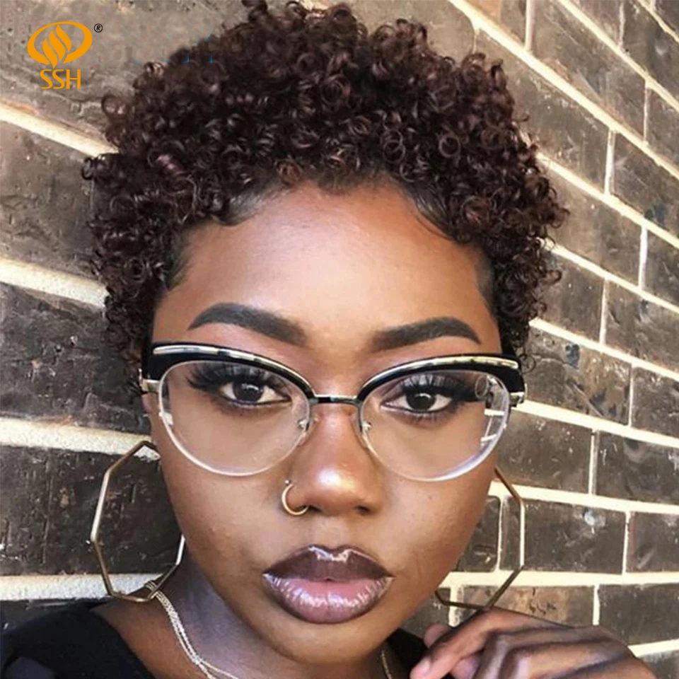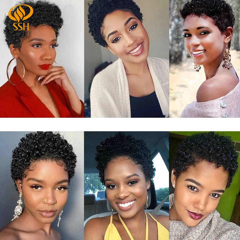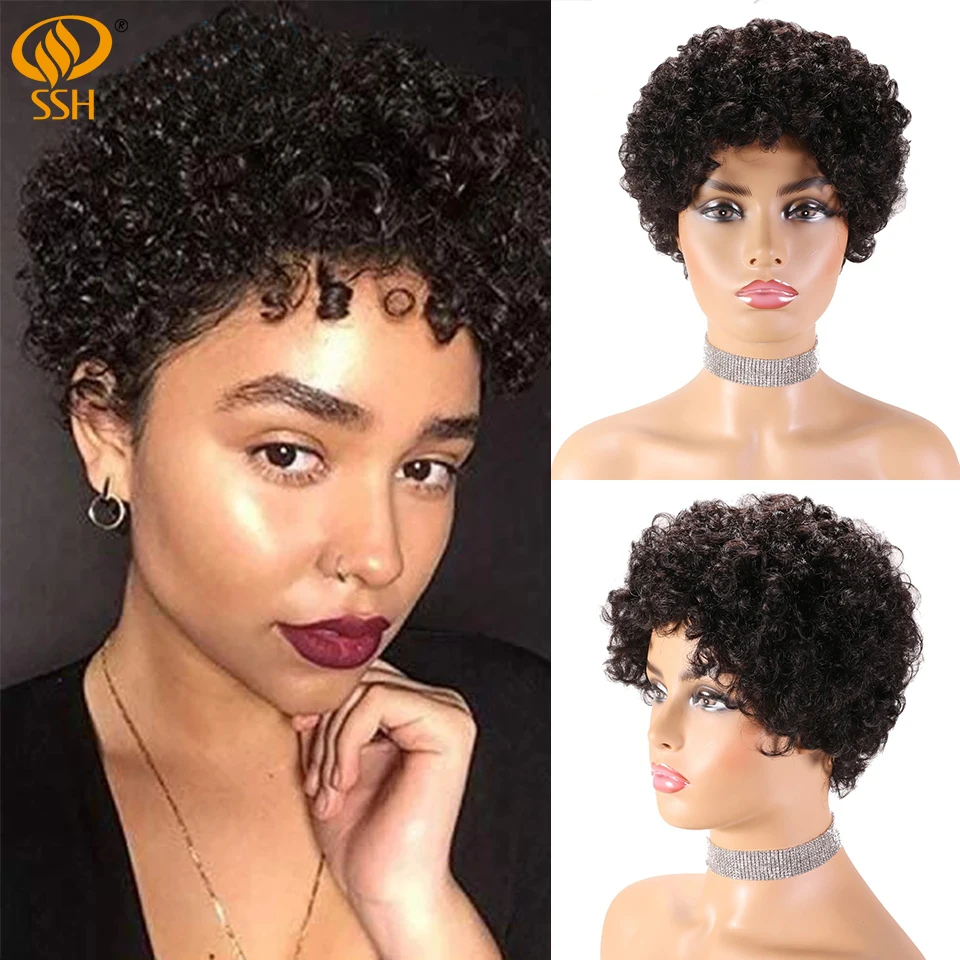 SSH Короткие афро парики афро кудрявый парик бразильские Remy человеческие волосы парики для черных женщин полная машина сделано дешевые парики черный цвет