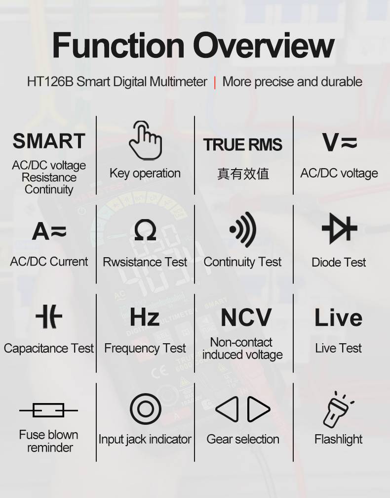 Профессиональный цифровой мультиметр умный измеритель напряжения HABOTEST HT126 TRMS AC DC Ohm HZ измеритель емкости диода