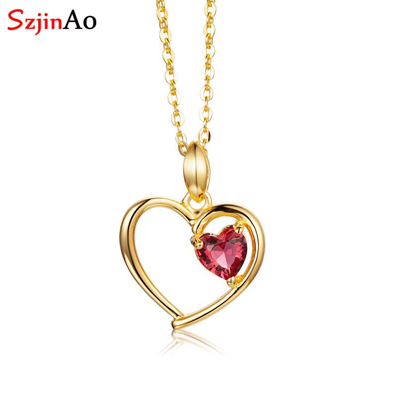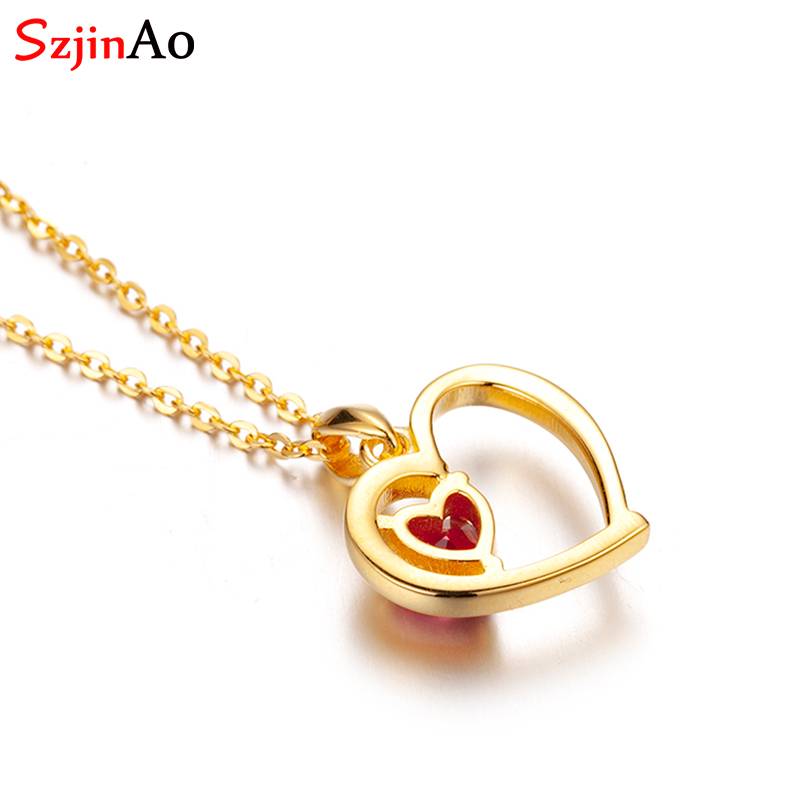 Szjinao Серебро 925 кулон ожерелье для женщин сердце желтое золото цвет годовщина девушка подарок Винтаж Рубин дизайнерское ювелирное изделие