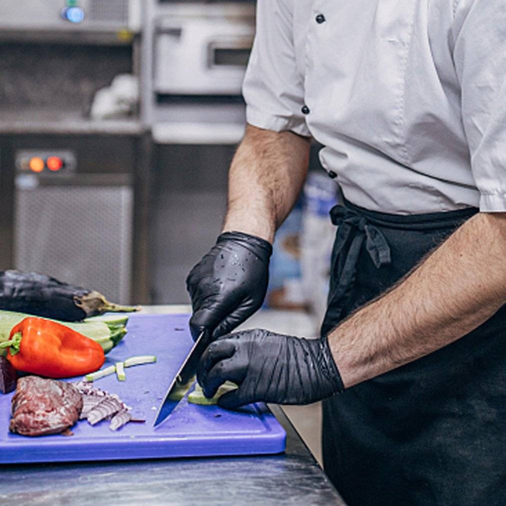Перчатки изготовлены из пищевого ПВХ материала, мягкие и без порошка, водонепроницаемые, маслостойкие и прочные, что позволяет работать с хорошей ловкостью.