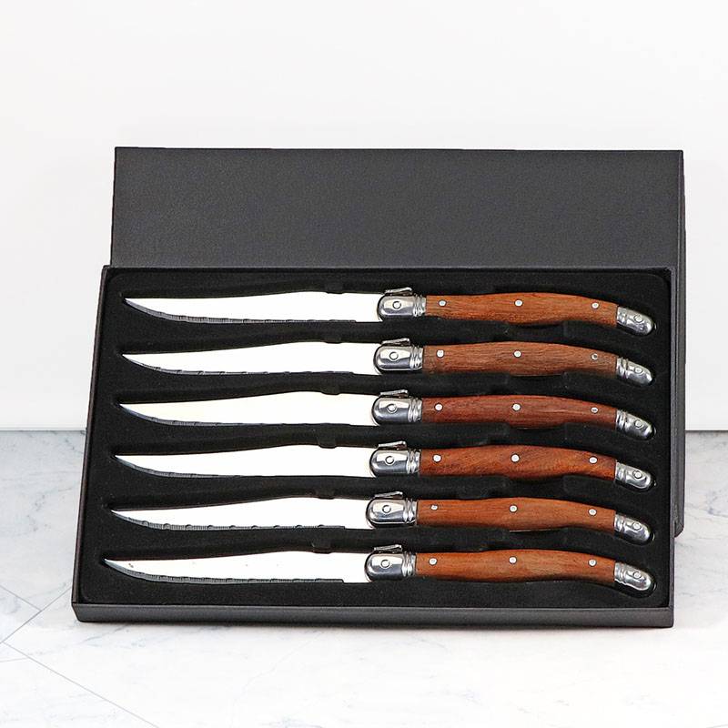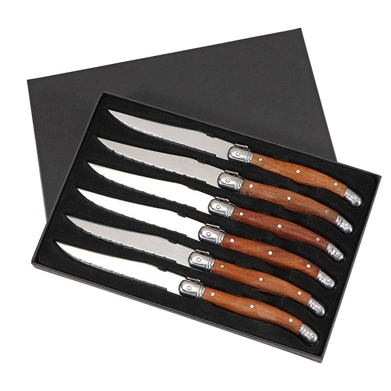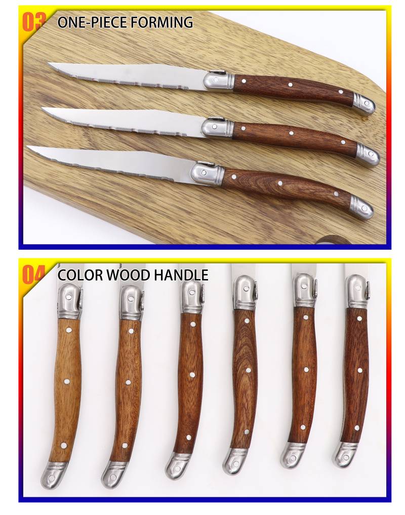 2. Изысканное и высококлассное: высокополированное ремесло с дизайном деревянной ручки; Laguiole с помощью столовых ножей обладает устойчивостью к ржавчине и резкостью. Подарочная упаковка.