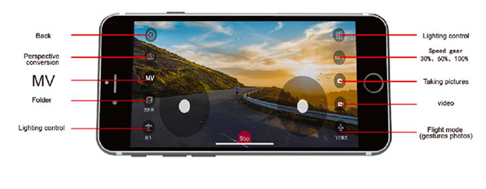 Установив давление воздуха, Квадрокоптер может стабильно парить в воздухе, что делает shcoting проще.