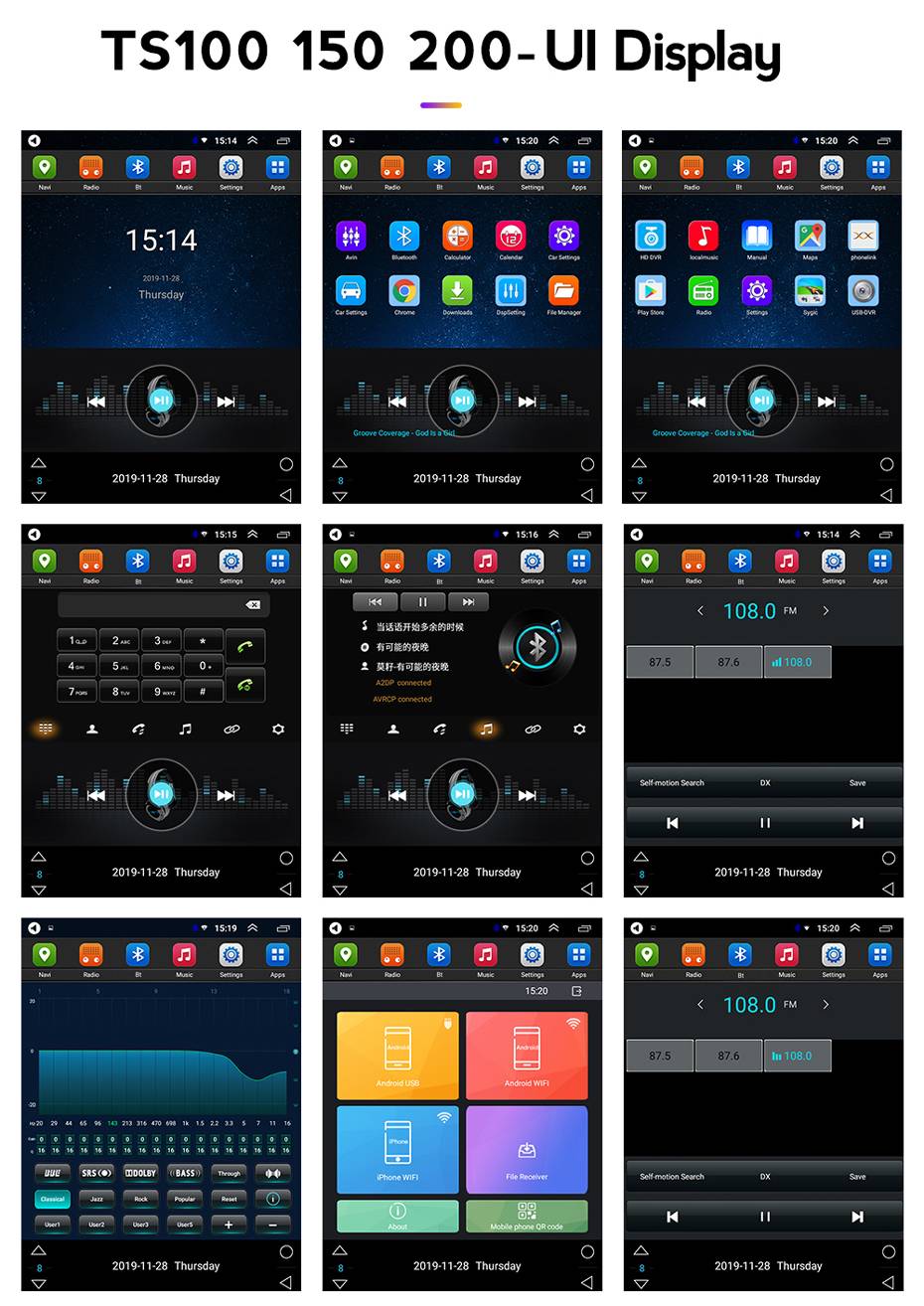 Основные функции:Система Android + 9,5 дюймов HD 2.5D емкостный вертикальный Тесла экран + 4 ядра 1,2 ГГц + DDR4 1 ГБ флэш-памяти (2 Гб опционально) + 16 Гб памяти (32 Гб опционально) + WIFI (4G сеть опционально) + зеркальная связь + управление рулевым колесом + DSP (опционально) + Android Auto (опционально) + Carplay (опционально) + Цветные кнопки, меняющие свет + все настройки логотипа автомобиля + подключи и работай, легко установить + внешний микрофон подарок + сплит-экран